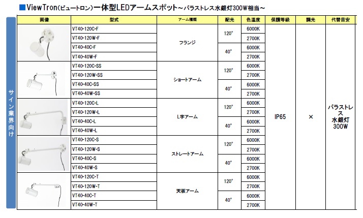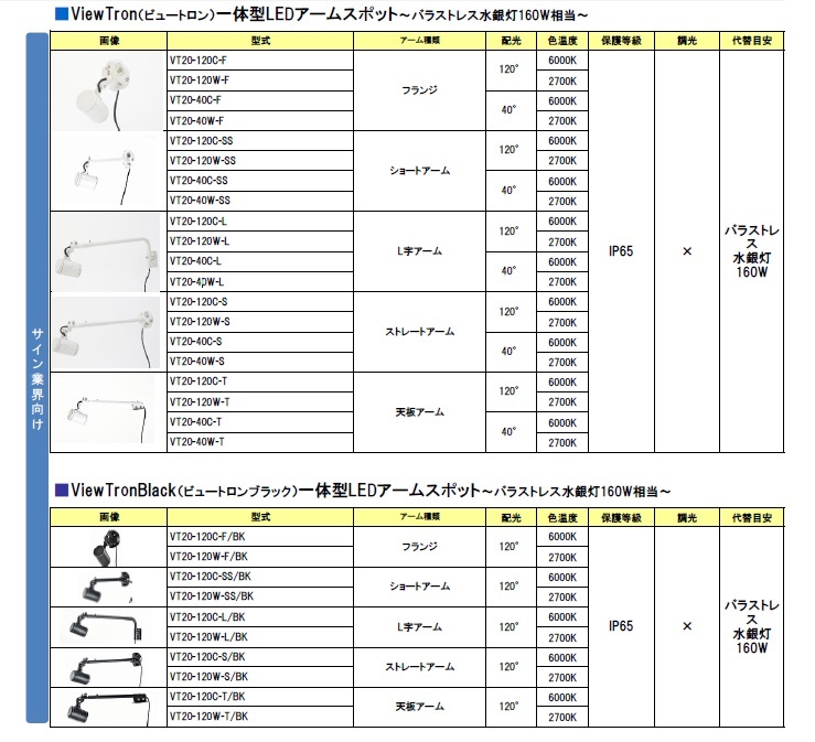 屋外サイン用アームスポット一覧